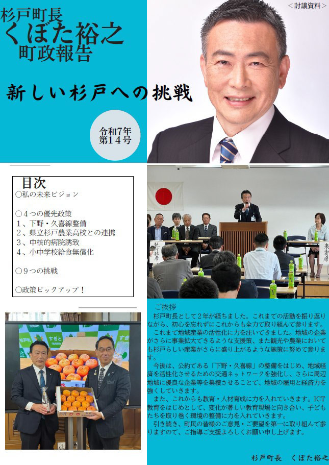 私たちの住む杉戸町が、良くなるのも、悪くなるのも、過去ではなく、未来でもなく、今この時に何をすべきかが重要なのです。